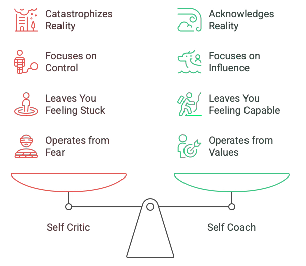 Here’s the tell: the Self Coach opens doors. The Self Critic slams them shut.