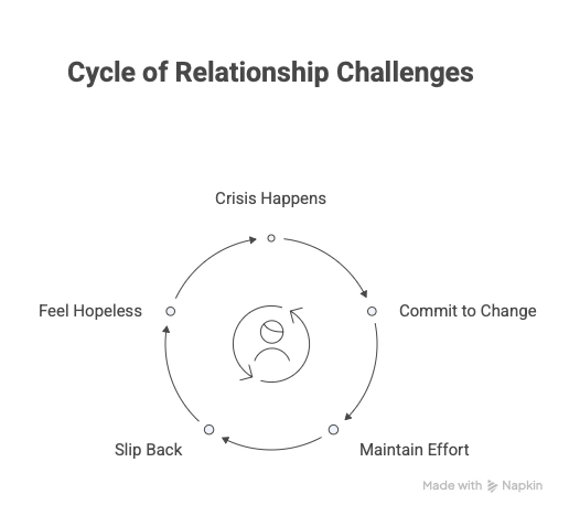 And eventually… maybe when stress increases, maybe when old resentments resurface, maybe just when they get tired of trying so hard… they slip. The old patterns come roaring back. They have another ugly fight. They feel like failures.